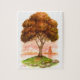 Uma pintura cênica de aquarela de Amanda Diehl com uma paleta eletrizante incomum, vermelha e verde. A árvore mapeada japonesa em primeiro plano domina suavemente as montanhas e o pagode em frente. A estação parece estar mudando à medida que folhas vermelhas enferrujadas passam verde. Pelo Paxdomino.