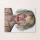 Bonito fêmea tocando seu rosto com o quebra-cabeça do quebra-cabeça