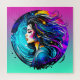 Mulher bonito com arte azul, turquesa, azul, roxa, lacrimejante, amarela e vermelha colorida ai feita em uma vibração herreal mística etérea.