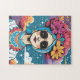 Esta quebra-cabeça é feita de uma ilustração colorida de uma mulher da moda com um chapéu de flor, óculos de sol e lábios vermelhos. Este é um quebra-cabeça excelente para coletores de quebra-cabeça e entusiastas da moda.