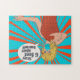 Quebra-cabeça mulher retrógrada de pop art com máscara facial