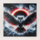 Majestic owl spreading its wings beneath a glowing celestial eclipse.