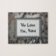 Não importa se ela se chama Nana, vovó, ou qualquer outro nome, as avós têm um lugar especial em nossos corações. Crie uma natureza com o tema quebra-cabeça personalizada especialmente para ela. O fundo da madeira derivada apresenta cores de tons de terra marmoreados de preto, marrom e cinzas. A foto captura o padrão único de abstrato criado pelo vento e o ar salgado da praia. Um retângulo grande no centro permite um fundo sólido para "Nós te amamos, Nana" que pode ser facilmente personalizado para sua avó.