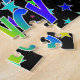 Este design de quebra-cabeça de quebra-cabeça vibrante, com tema de aniversário, tem a mensagem "FELIZ ANIVERSÁRIO", com os personagens que têm um espectro colorido do arco-íris inspirado num padrão de gradação, além de um padrão de fundo de estrelas divertidas. Um quebra-cabeça excitante como este pode ser usado para enviar desejos de aniversário a alguém chamado Nancy. [~Z0000468]