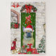 O Natal do Bulldog Francês sentado do lado de fora da casa decorada com coroa de Natal, a árvore de Natal é uma ideia perfeita de presente de Natal para amantes de cachorros.