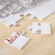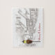 Quebra-cabeça com um esboço preto e branco de uma aldeia vitoriana, sendo a única cor a do candeeiro de rua e das decorações de Natal.