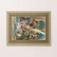pintura vintage encantadora da cena da natividade com madonna e criança, joseph, três sábios com presentes, e multidões de pessoas do lado de fora, com um lindo raio de luz tocando no jesus bebê que levantou a mão em uma saudação.