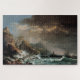 quebra-cabeça de quebra-cabeça de 20" x 30" com uma imagem de uma pintura intitulada "Naufrágio numa Tomada Rochosa" criada em 1575 pelo artista Carlo Bonavia. Bonavia se caracterizou por sua terra e paisagens, quase sempre espetaculares, uma mistura de fantasia e realidade. Nessa pintura, as cinzas de nuvens ondulantes são contrastadas tanto com as linhas de hetero que definem a chuva quanto com a espuma branca das ondas; apesar da tempestade, um céu azul puro é vislumbrado à esquerda. Os penhascos estão lotados de fortalezas feitas pelo homem, enquanto mais longe, em terra firme, é possível discernir uma cidade com grupos de casas solares. Bonavia recorreu à composição em forte diagonal, desde o alto chão à esquerda da cena até o mar aberto à direita, como com a variação de luzes e cores que acentua os efeitos quase pré-românticos. Veja toda a coleção de Quebra-cabeça de naufrágio nas ATIVIDADES | Seção Quebra-cabeça.