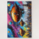 {{{ AI ART }} Três aeróstatos que voam no céu cósmico acima de uma linha do horizonte da cidade.