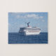 Uma navigação do navio de cruzeiros no Oceano Atlântico, sob um dossel de azul e de branco