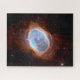 A Nebulosa do Anel Sul em luz quase infravermelha, capturada do Telescópio Espacial James Webb. Esta cena foi criada por uma estrela anã branca - os restos de uma estrela como o nosso Sol depois de derramar suas camadas externas e parar de queimar combustível através da fusão nuclear. Essas camadas externas agora formam as conchas ejetadas ao longo dessa visão. Nessa imagem da Câmera Near-Infravermelho (NIRCam), a anã branca aparece no canto inferior esquerdo da estrela central brilhante, parcialmente escondida por um pico de difração. A mesma estrela aparece - mas mais brilhante, maior e mais vermelha - na imagem do Instrumento Infravermelho de Médio (MIRI). Esta estrela anã branca está enrolada em camadas grossas de poeira, que a fazem parecer maior. Ao longo de milhares de anos e antes de se tornar uma anã branca, a estrela ejetou periodicamente a massa - as cascas visíveis de material. Como se repetíssemos, ela se contraía, aquecia - e então, incapaz de empurrar mais material, pulsado. O material estelar foi enviado em todas as direções e forneceu os ingredientes para essa paisagem assimétrica. Hoje, a anã branca aquece o gás nas regiões internas - que aparecem azul à esquerda e vermelho à direita. Ambas as estrelas estão acendendo as regiões externas, mostradas em laranja e azul, respectivamente. Par na região circular no centro e você verá um cinturão assimétrico e instável de material. É aqui que se encontram duas tigelas que compõem a nebulosa. (Nessa visão, a nebulosa está num ângulo de 40 graus.)