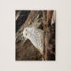 As corujas nevado bonitas migraram para baixo ao noroeste pacífico. Eu encontrei esta uma posição em cima da madeira lançada costa ao longo do litoral em Washington.