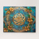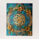Quebra-cabeça Nó Celta Flores Douradas Azul Teal Nódulo Névoa