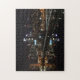 Esta foto da noite da cidade de Philadelphfia foi tomada de uma ponte que cruza o rio de Schuylkill. O Schuylkill deposita funcionamentos do riverwalk ao longo do banco do rio mais perto da cidade Center, quando as linhas borradas de carros que viajam na via expressa de Schuylkill puderem ser consideradas à esquerda.