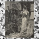 Ilustração Vintage imagem de casamento vitoriano preto-e-branco com uma sessão de fotografia de retrato de noiva. A noiva está em seu vestido clássico de casamento com buquê se preparando para fazer retratos de casamento com seu fotógrafo.