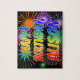 Este design de quebra-cabeça de campo, emocionante e divertido, com tema de aniversário, apresenta a mensagem "FELIZ ANIVERSÁRIO, ALISON", tendo um espectro colorido de inclinação inspirado no arco-íris, e um padrão de fundo inspirado em fogos de artifício celebratórios e animados. Um quebra-cabeça empolgante como este pode ser uma maneira divertida de enviar cartões de aniversários para alguém chamado Alison. [~Z0000465]