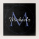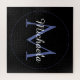 Monograma moderno com círculo azul minimalista com nome azul inicial e branco a preto. Nome personalizado personalizável com um serif inicial atrás em uma cor preta.