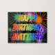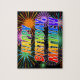 Este vibrante, divertido design de quebra-cabeça de aniversários com tema de aniversário tem a mensagem "FELIZ ANIVERSÁRIO, MATTHEW" ter um espectro colorido de gradiente inspirado no arco-íris, e um emocionante padrão de fundo inspirado em fogos de artifício celebratórios. Um quebra-cabeça colorido como este pode ser usado para enviar cartões de aniversários para alguém chamado Matthew. [~Z0000465]