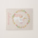 Este quebra-cabeça de na moda apresenta uma ilustração bonito de um unicórnio e uma coroa floral em rosa-claro. Personalize-o com seu nome em caracteres cursivos de script. ideia de presente de excelente!