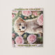 Quebra-cabeça bonitão com um adorável Ouro de cachorro-colorido-d-água, um cachorrinho no jardim do rosa. Faz um gagueiro de estoque fofo personalizado ou presente de aniversário para crianças e todos os amantes de cachorros. Vem com uma caixa de carregar de cartão com uma imagem quebra-cabeça impressa na tampa! Personalize facilmente o texto ou deixe-o vazio. - Kate Eden Art
