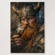 A battle-worn Viking stands in quiet resolve, his piercing gaze reflecting years of strength, loss, and survival. Clad in rugged armor and a weathered horned helmet, he pauses in the cold air, smoke curling from his pipe as snow threatens on the horizon. This striking scene captures the spirit of resilience, honor, and the calm before the storm, where courage is no longer loud but deeply rooted and unshakable.