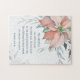 Escritura inspiradora quebra-cabeça de natal retrata um elegante design de cor de água floral de inverno com poinsetos de salmão e folhas de prata e azul. Apresenta Números Versos Bíblias 6:24-26, "O SENHOR Abençoa-te e mantém-te; O SENHOR faz-lhe brilhar o rosto e ser gracioso; O SENHOR vira-lhe o rosto e dá-lhe paz."
