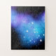 Quebra-cabeça de galáxia com uma abertura cósmica de nuvens espaciais de nebulosa azul e roxa e estrelas cintilantes. ♡ Idyllfire