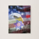 O americano judaico orgulhoso afirma seu patriotismo. A combinação da águia americana americana, a bandeira dos Estados Unidos e a estrela de David são retrato aqui em um solar muito saboroso.