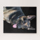 Um lindo cão German shepherd adorava este quebra-cabeça divertido