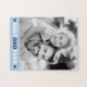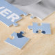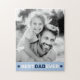 Quebra-cabeça de quebra-cabeça com sua foto personalizada e o texto "Melhor pai de sempre" abaixo flanqueado por corações azuis leves.