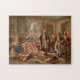 quebra-cabeça de quebra-cabeça de 11" x 14" com uma imagem de "O Nascimento da Velha Glória", uma pintura de 1908 que mostra Betsy Ross mostrando o General George Washington a primeira bandeira americana. O artista Edward Percy Moran (1862-1935) era um artista americano conhecido por suas cenas de história americana. Veja toda a coleção de Quebra-cabeça do Dia de Independência na categoria HOME na seção HOLIDAYS.