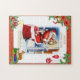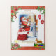 Este palhaço de quebra-cabeça de colagem de Natal criou para crianças se juntando no dia de Natal. O design apresenta um Papai Noel vintage checando sua lista para garotos e meninas bons. As ilustrações cortadas da bolsa de presente dos Papais noeis, do cavalo de balanço, do trem de choo-choo e dos presentes embrulhados foram adicionadas como sobreposições. Um quebra-cabeça como este seria um presente pensativo para crianças de tias, tios e avós.