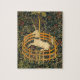 Quebra-cabeça com tapeçaria medieval O Unicórnio em cativeiro (1495-1505). A sétima tapeçaria no The Unicorn Tapestries - também conhecida como The Unicorn Rest in a Garden - mostra um unicórnio branco com um colarinho azul sentado dentro a cerca. A grama verde e lindas flores rodeiam o unicórnio. Um presente fantástico para colecionadores de arte medievais e amantes da fantasia!