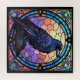 Apresentado em vidro colorido, um raspão assustador e assustador vira seu olhar no espectador.