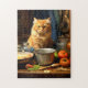 Esta é uma quebra-cabeça de um gato. Sua imagem retrata um gato laranja sentado numa mesa da cozinha com comida. Este quebra-cabeça faz uma ideia de presente de excelente para indivíduos que amam animais, gatos, gatos, tábuas laranja, e imagens de temas de comida. Este conteúdo quebra-cabeça é adequado para indivíduos com idade superior a 6 anos. Ele está disponível em todos os tamanhos e pode ser ajustado pelo cliente.