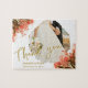 Orange Oleander Flowers Foto de agradecimento quebra-cabeça de Casamento. Quebra-cabeça de casamento fotográfico com uma foto de casamento em um quadro de bruxaria, noiva e noiva e data de casamento. Personalize com sua foto de casamento e outros detalhes. Um obrigado elegante e floral que você quebra-cabeça - excelente como presente para seus convidados de casamento.