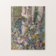 Artista original quebra-cabeça, vidoeiros da aguarela e flores projetados da floresta