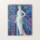 Os rosas e o art deco da noite. O artista francês Georges Barbier da ilustração desde 1920 S. do art deco pintou descrições bonitas de Paris durante o 1920. Seu trabalho caracterizou frequentemente senhoras e casais nos estados de repose, de enfado, e de leve enfado. Os rosas e a noite descrevem um louro novo bonito em um vestido da era do art deco com o lenço verde que está na frente de uma estrutura de rosas diminutos roxos e azuis. Um grande presente para fãs do art deco, Georges Barbier, e vintage art.