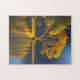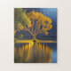 Uma árvore ouro se reflete num lago lua.