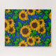 Quebra-cabeça Ouro Girassóis e folhas em azul escuro