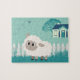 Quebra-cabeça Ovelha de animação ilustrativa com creme verde