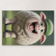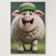 Uma ovelha feliz do tipo cartoon sobre a grama.