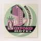 Ilustração vintage de etiqueta de bagagem da América do Sul ou arte de cartaz de viagem do Oxford Hotel na capital Montevidéu, Uruguai, apresentando um edifício com o texto está usando uma coroa. Cores retrô divertidas usando rosa, creme e verde.