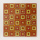 Um padrão de praças de vovó em tons de vermelho e amarelo é um design divertido para cidadãos mais velho ativos e seus filhos.