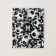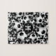 Este quebra-cabeça de serra de futebol feminino apresenta um padrão de bolas de futebol preto e branco de tamanho variado em um fundo preto - personalizar com seu nome e monograma - por katz_d_zynes