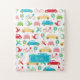 Adicione um toque divertido ao quarto ou ao berçário do seu menino com este quebra-cabeça de serra que celebra veículos de transporte: carros, bicicletas, balões de ar quente, helicópteros e aviões. Os veículos estão em cores brilhantes e amigáveis para crianças, de azul, amarelo, vermelho, rosa e verde. Adicione o seu nome para um toque pessoal.