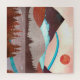 Cena de paisagem montanhosa em tons de vermelho e azul com um lago e um arco-íris azul ousado.