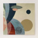 Uma abstrato de paisagem de rolagem de colinas texturizadas com árvores e plantas em cores ousadas de vermelho, laranja, bege, verde e bronzeado.