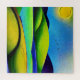 Design de paisagem digital com aquarela em tons vibrantes de azul, verde e amarelo com sol e aves.