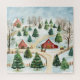 Uma cena de inverno com eterno clássico, cor d'água, com casas e celeiros em uma colina com árvores de abeto durante o inverno!